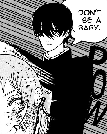 Кстати, я шас вспомнил самое начало первой арки, где Аки чуть пизды не дал Дэнжи, за его слова, что тот бы подружился с демоном, а сам под конец закорешился с Хуебесом Ангелом. Иронично.