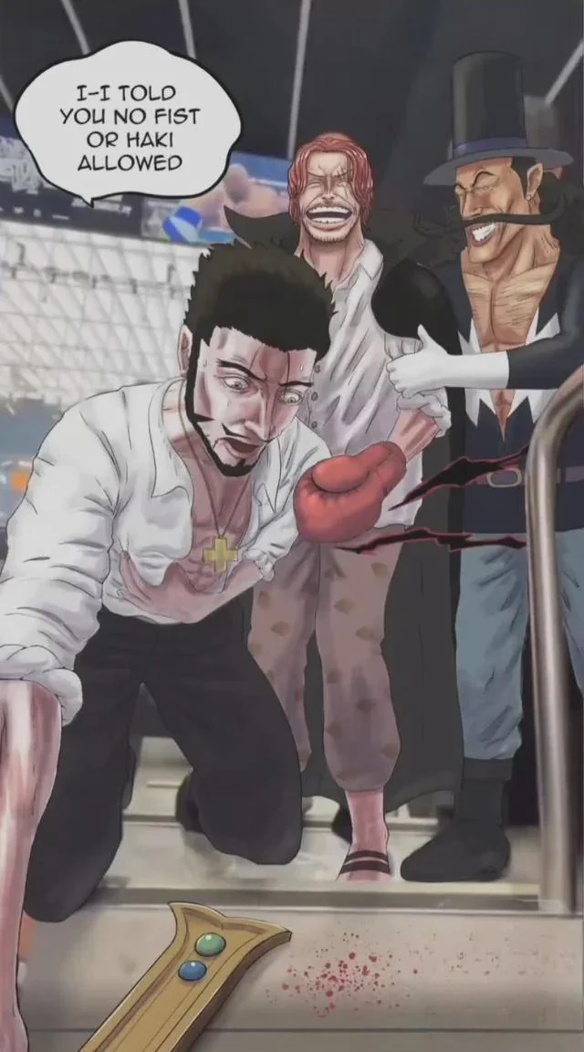Шанкс конечно нагибал, но это с мечом было, а вот без меча что с ним происходит уже ясно.