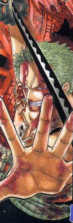 Вот прямо изображено все: Михоук собирается прирезать зоро, замахивается Зоро начинает исполнять финалочку Михоук охуевает, потеет и уходит в оборону тупо выставив перед собой меч плашмя Мечи Зоро ломаются потому что черный клинок пизже по грейду Зоро сдается