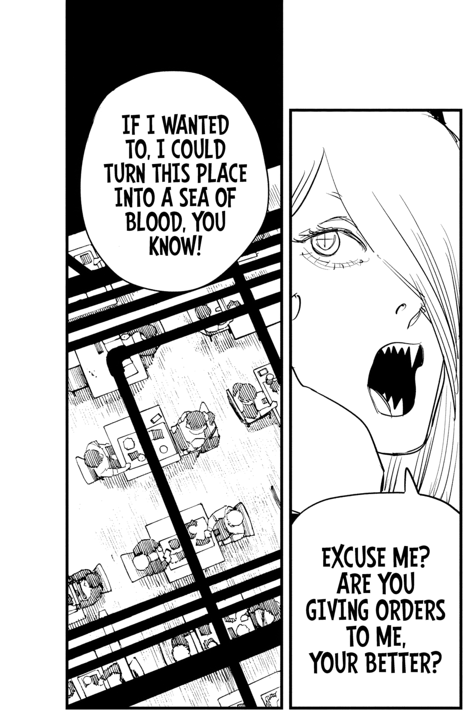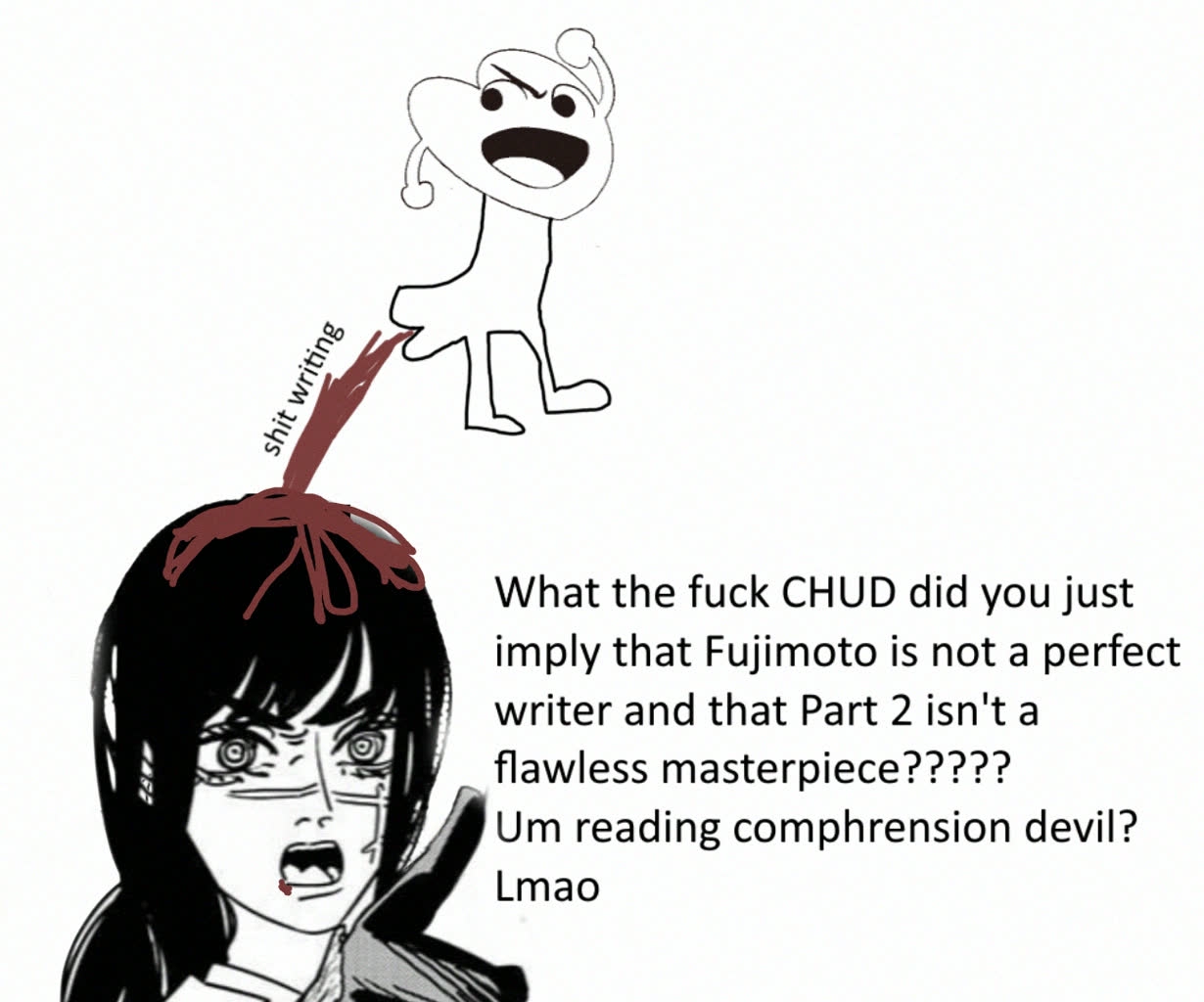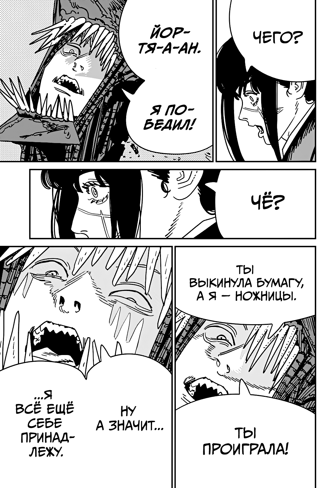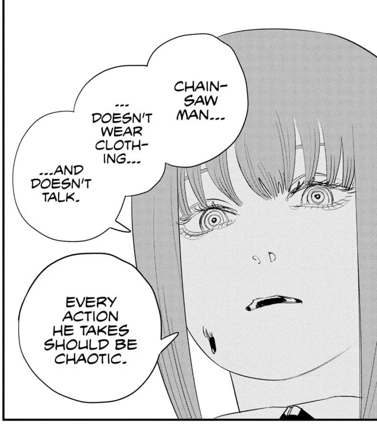 Стало так похуй на пилу но единственный вопрос который заставляет меня чекать новые главы это "кто такой Попыт и откуда у него абилка стирать сущности из реальности которая никак не связана с бензопилами". Чует жопа моя что фудзикал так и не ответит на этот вопрос