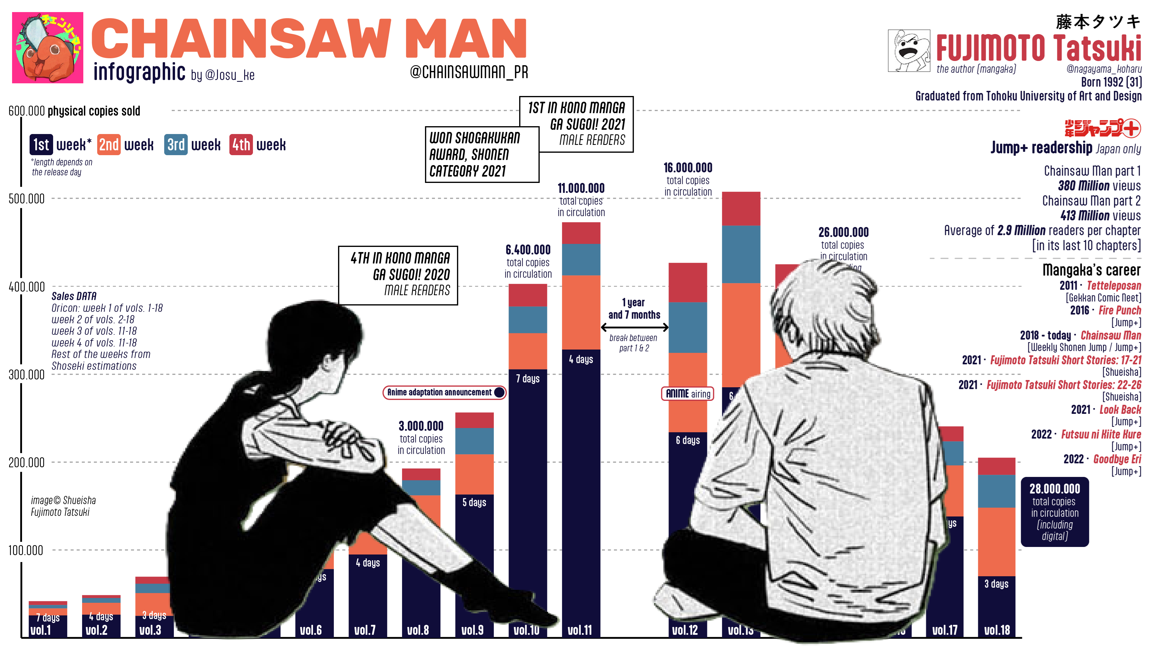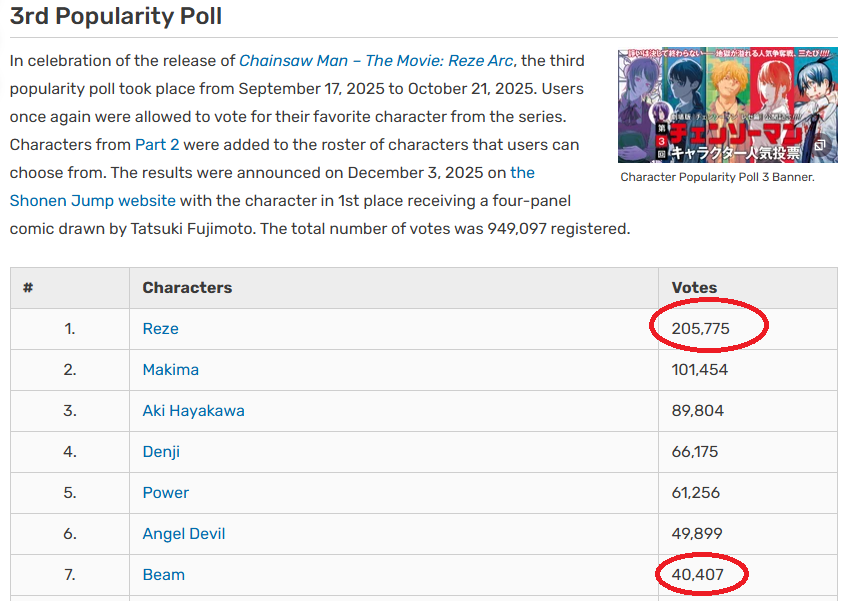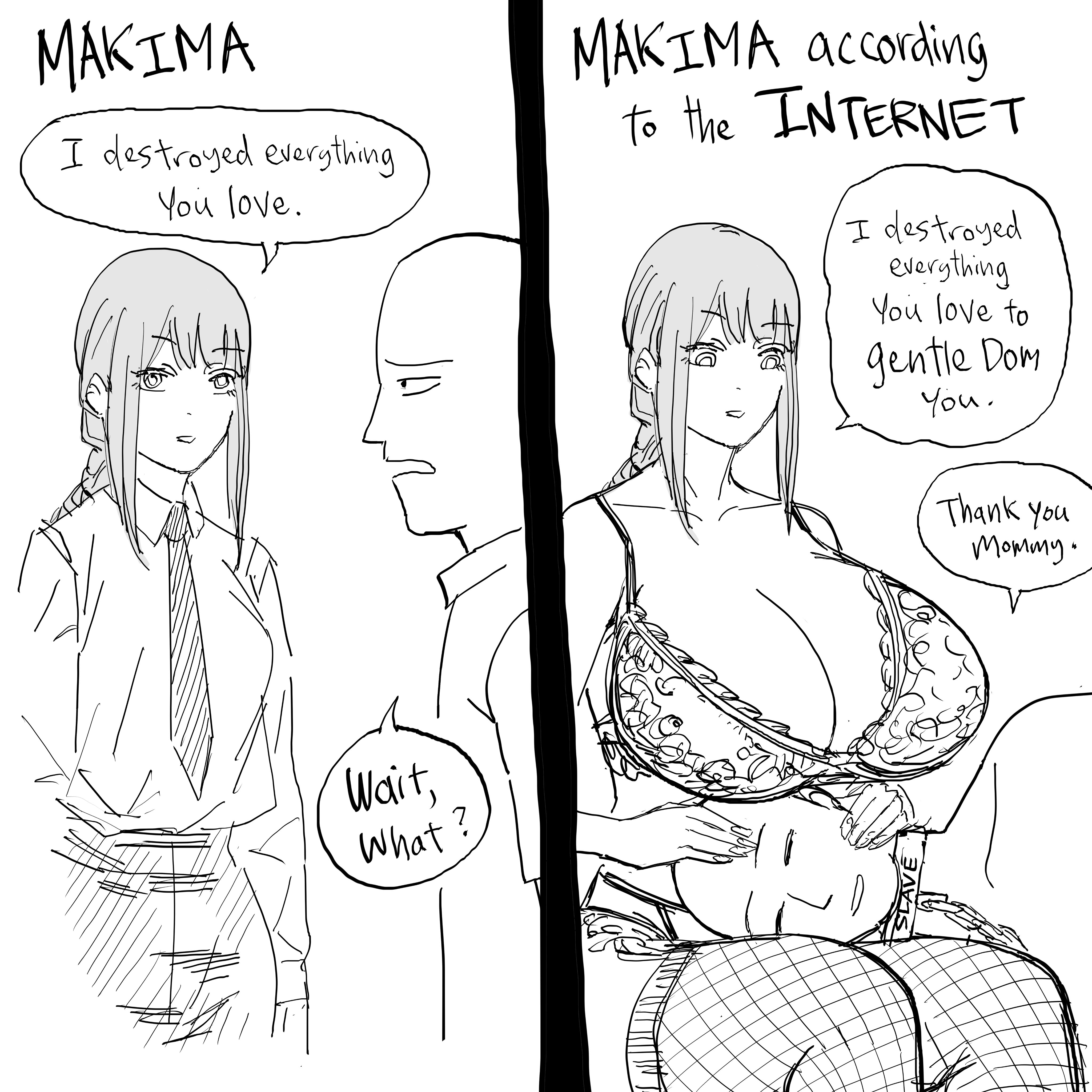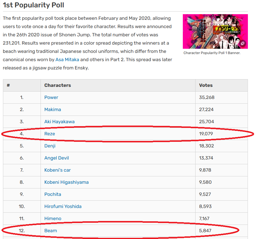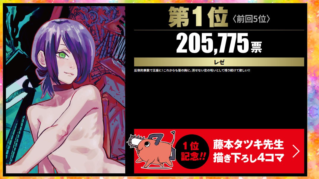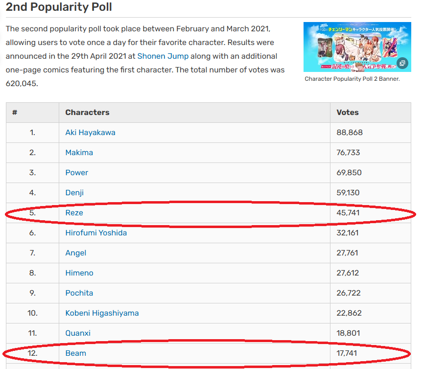 Итоги популярности второй части Каким образом главная героиня не смогла обойти второстепенного персонажа имея в 20 раз больше экранного времени? Почему главные антагонисты никому неинтересны, а Макима занимает второе место спустя столько лет?Фудзимото-сан, что же пошло не так?! Мне как обычно - 13 страничек каракуль и перерыв на две недели Спасибо, Шеф