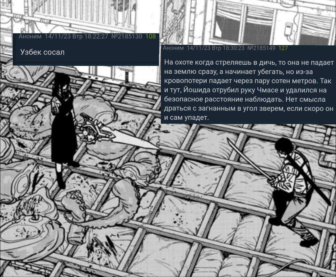 Ну дрочит Фудзи на БДСМ как будто это не было очевидно по всей сюжетной арке с Макимой и дрочит Кому не похуй Но с другой стороны кому не похуй что там происходит в калодвоечке тоже Я тут картинки со своей женой Павер-чан пощу и я счастлив