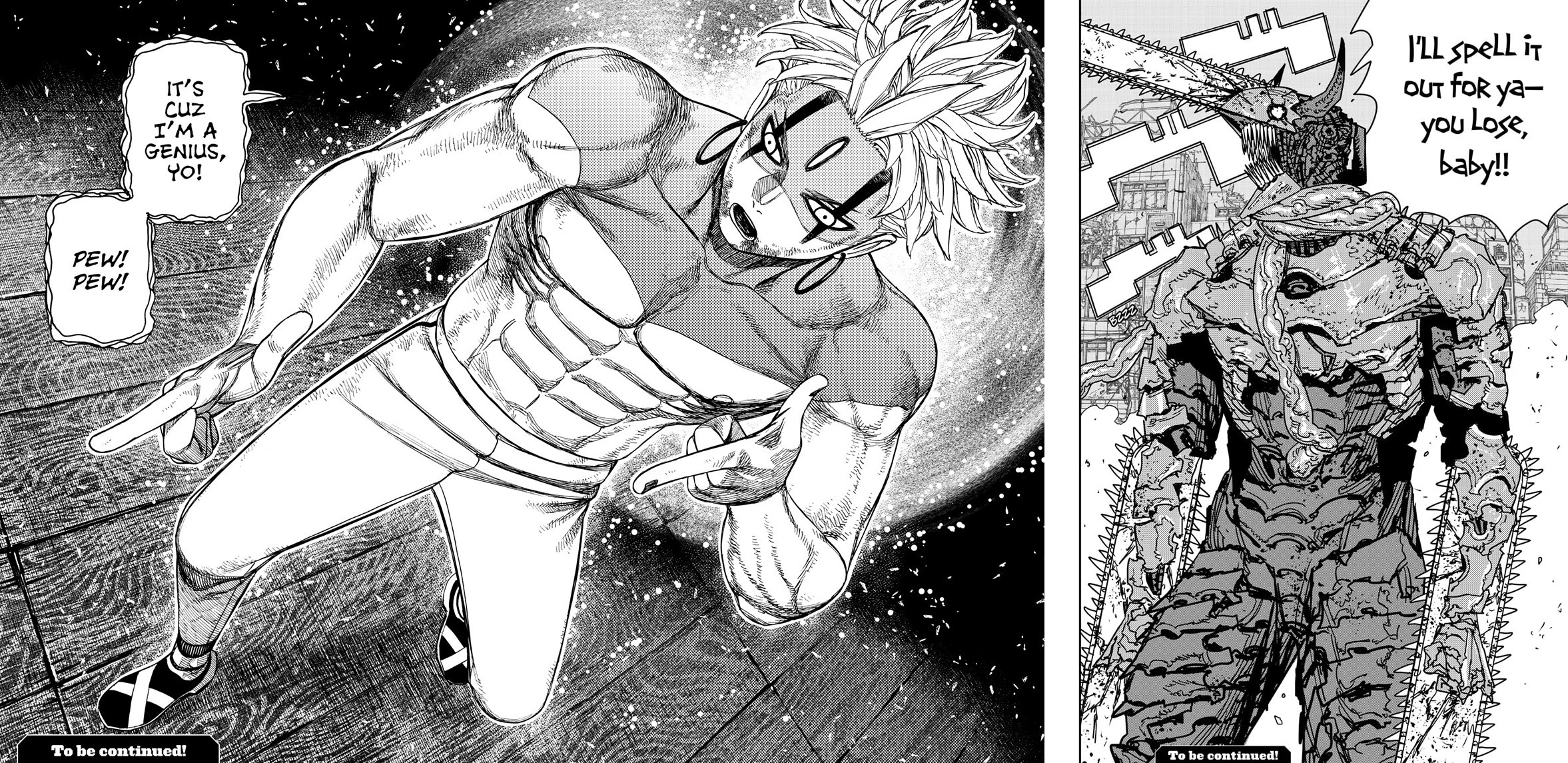 Щас вроде том кончился + перерыв 2 недели Следовательно 8-15 глав ещё будет Такими темпами 3-4 месяца дожирать самый большой позор в карьере фудзимото Слили всех, просто всех Аса не герой, на йорку (главный антагонист) ваще всему фандому ПОХУЙ, наша сруля просто аутистка, а не тру мастермайнд, фейк пила додстер, йошида лох объелся блох сел на лавочку и сдох Ну и конечно же денжи побЯдит через фудзи клише "угадай че выкину"