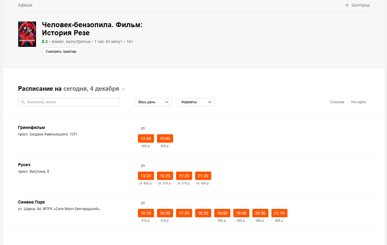 лол даже в моем мухосранске резе в кинотеатре а тут кинотетр довльно нищий в здании тц с довольно малым кинозалом но чекнул билет 400р не спасибо я не настолько богатый