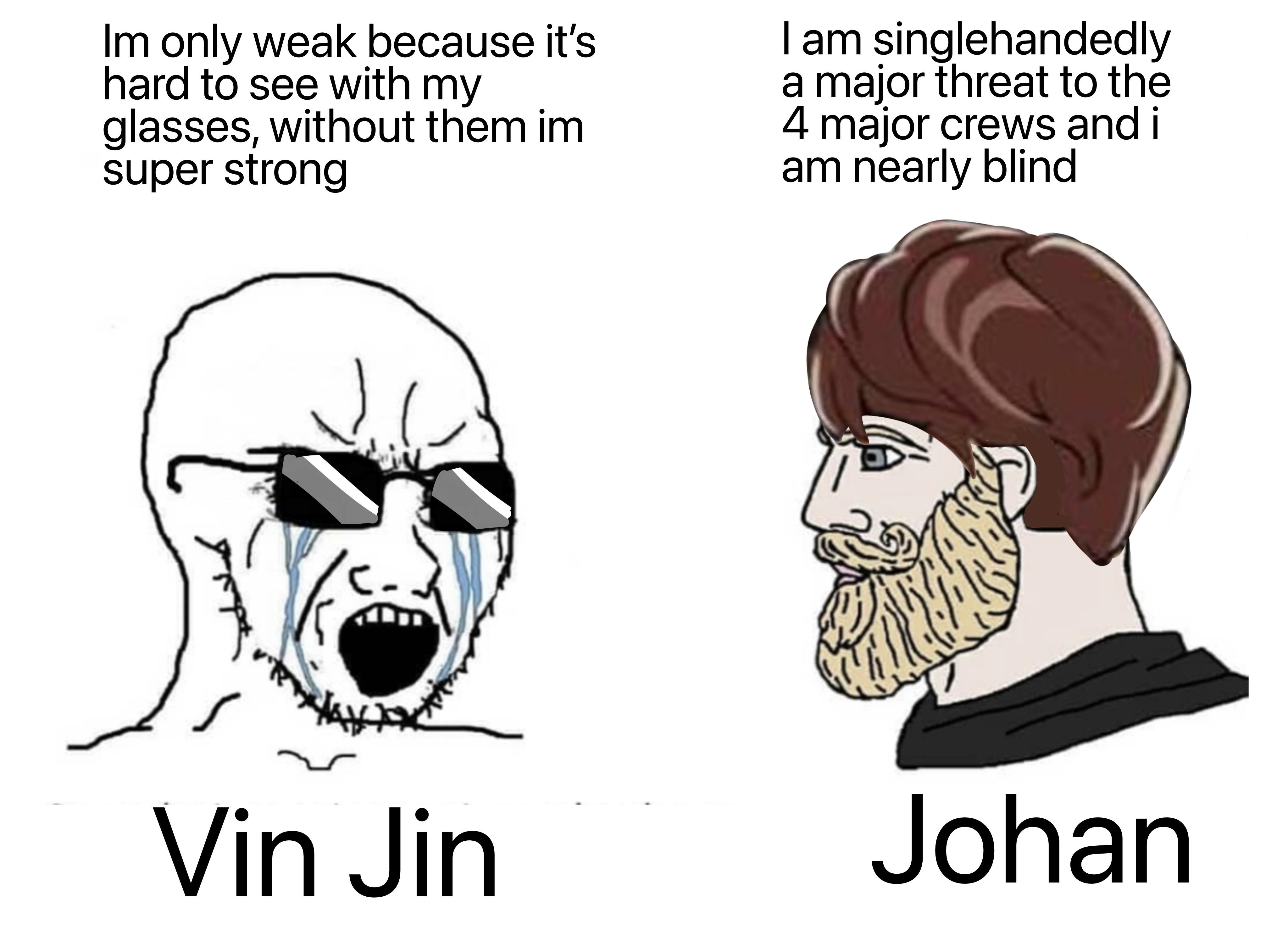 >>2489571 (OP) Почему психопаты? Психопаты же холодные холодные стратеги они типа чувяка который им не нравится чужими раками скорее грохнут, навроде как того как например обставить всё так чтобы его государство грохнуло ха преступление которого он не совершал, а психопат как бы не приделах и даже рядом не стоял. Эти "весёлые" импульсивные психи это больше на архетип социопата похожи. Это они могут взорваться и отпиздить кого-то молотком.
