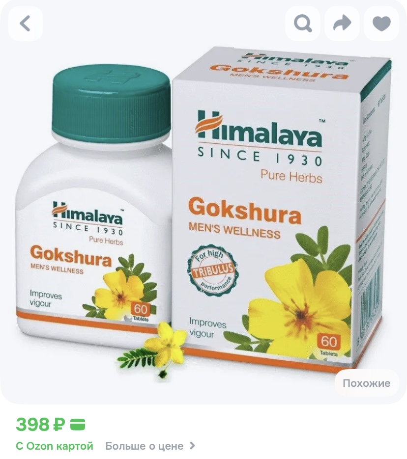 Вот, смотри, абсолютно безопасная травушка Gokshura Tribulus, он же трибулус просто, Заказывается даже на озоне/вб, я сам пью, последние покупал на озоне/вб, но изначально покупал в Индии, тк там частенько отдыхаю, первый раз когда попил уже на 3-4 день почувствовал, что появилось более сильное сексуальное желание, на сперматогенез он тоже влияет в лучшую сторону.