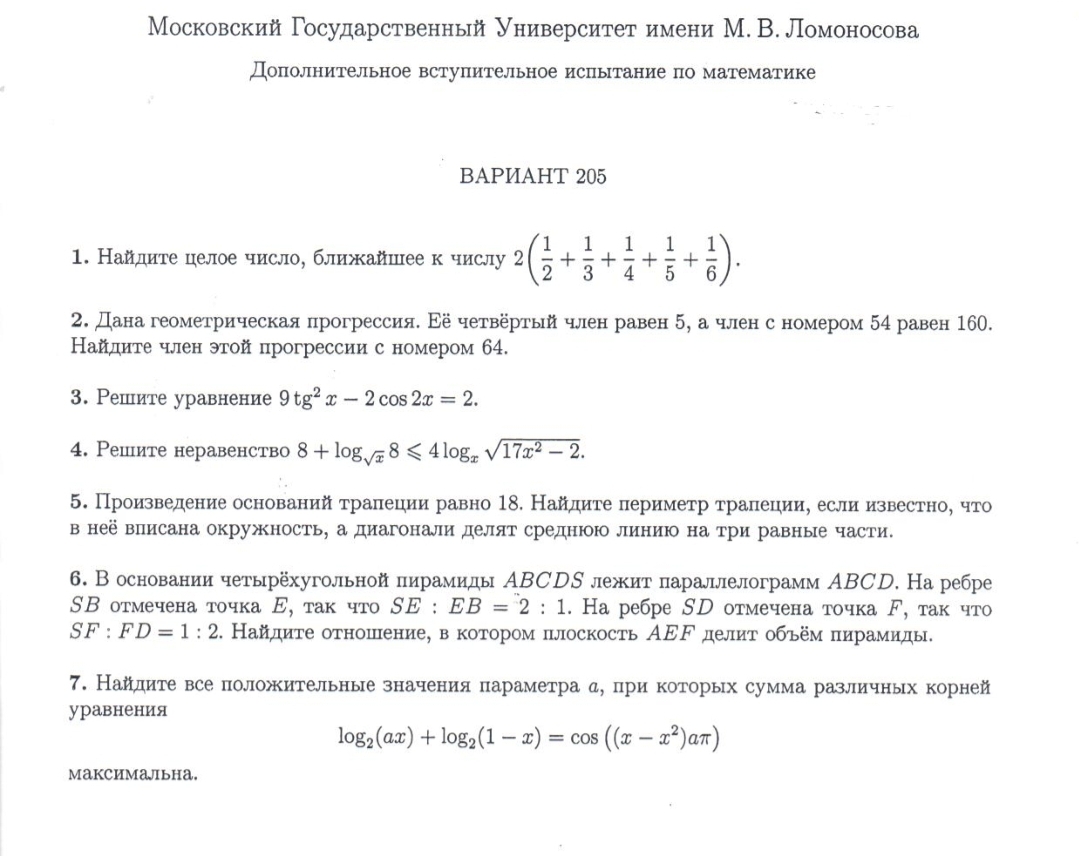 >>83603 >мгу Ааа! Че ты несешь бля! Вот тебе м.-/м МГУ. Этл же реально хуйня: 1.Элементарно, увидеть только надо, что там 1 2 и 5 слпгаемое дают 1, дальше очевидно. 2. Очевидно, как и все прогресии. 3. 13 задача ЕГЭ. Сводишь к квадратному и решаешь. 4. Не оподливиться с ОДЗ Все молодец, ты мехматянин