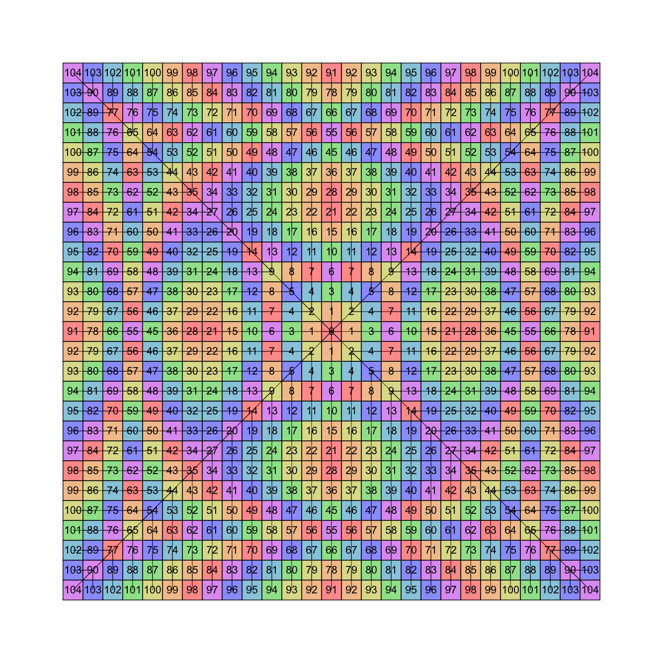 Есть манхэттенское расстояние и есть расстояние Чебышева. Если обходить равноудалённые точки по Чебышеву в порядке возрастания расстояния городских кварталов, получается пикрелейтед. Вопрос знатокам: есть ли у этого бастарда название и какая-то литература по теме?