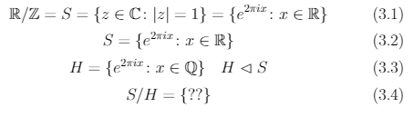 >>38812 Хорошего ничего не будет, довольно отвратительная группа. Я ее опишу в аддитивном смысле, но ты всегда можешь взять экспоненту от каждого элемента и получить в своём виде. Элементами будут 0 и все иррациональные числа из отрезка [0, 2п] такие, что разность между любыми двумя иррациональная. Более строго, это будут классы эквивалентности по отношению х~у <=> х-у - рациональное. Заметь, что эта группа будет несчетной, и там поразительно мало чисел, которые мы можем более-менее адекватно описать. Хер знает, может есть какая-то приятная модель для такой группы, но я сомневаюсь.