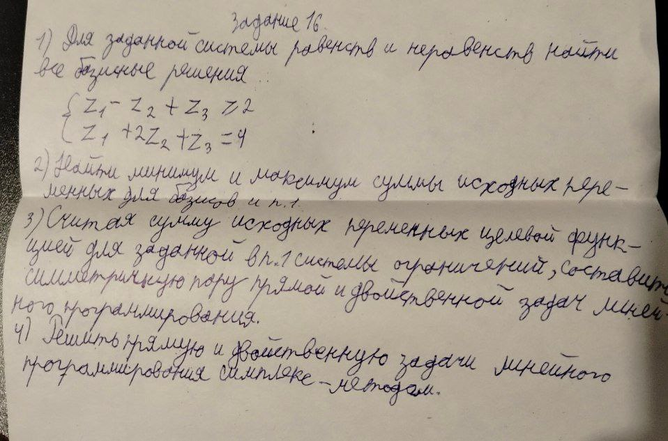 Всем ку, может кто шарит в таком предмете как "Исследование операций", требуется помощь с решением экзамена (сам ничего в этом не понимаю). Сами задания на пикче