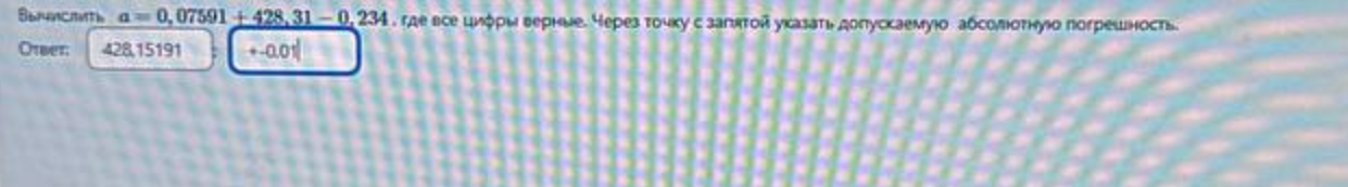 Сап, двач, как решать эту хуету? Я только если я правильно понимаю смог высчитать абсолютную погрешность, опять же, если я правильно понял она считается как 10 в отрицательной степени количества чисел после запятой у каждого числа, то есть для первого числа 0.07591 это будет 10 в -5 и так далее, с каждым числом, потом это складывается, но как вычислить результат так и не вкурил чета). Если что ответ тут не я вписывал, просто одногруппника попросил условие скинуть.