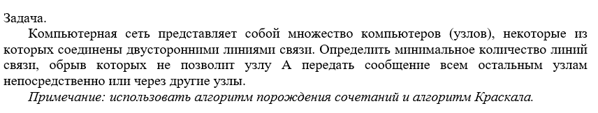 Если дословно, то задача выглядит так пик, эта задача легко решается с помощью алгоритма поиска максимального потока, а как с использованием Краскала и комбинаций/сочетаний -- ума не приложу. Может кто из умных анонов подсказать?