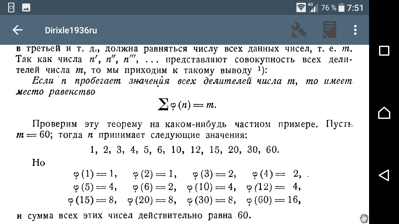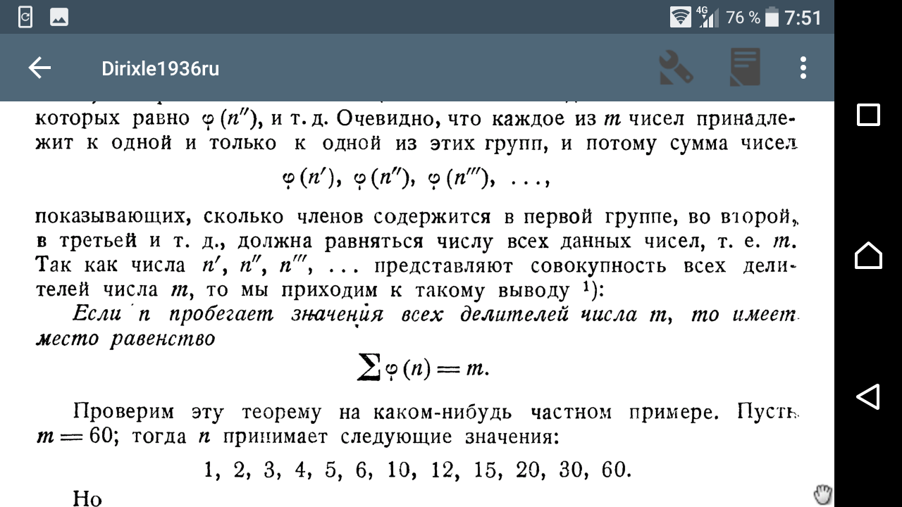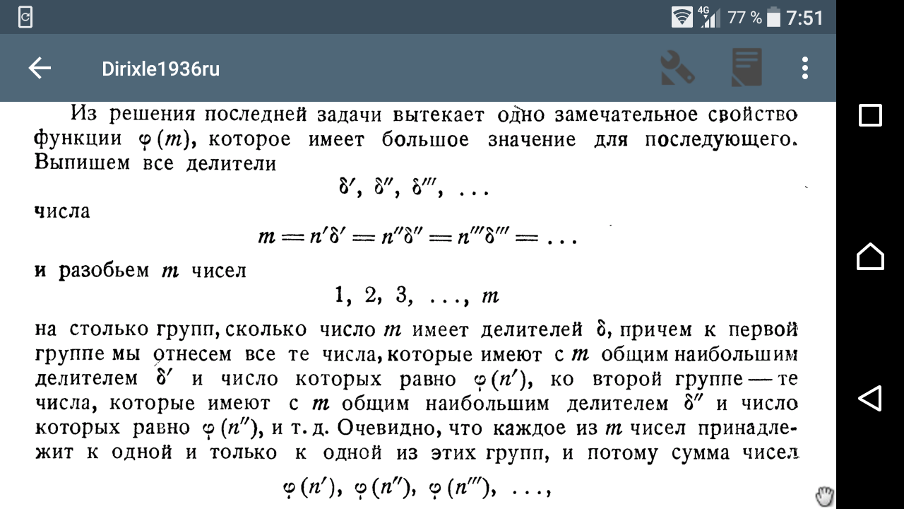 >>101043 >че это за группы Ну указано же - число чисел с общим НОД числа m и меньшего его. Так для m=10 получится 4 группы: {1,3,7,9}, {2,4,6,8}, {5}, {10} для n = 1, 2, 5, 10 соответственно.