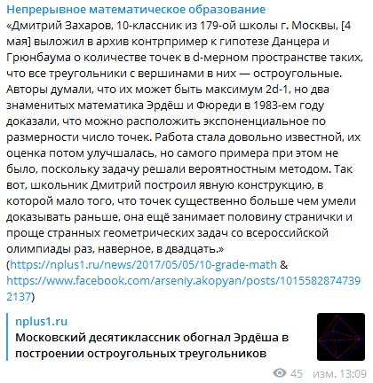 https://t.me/joinchat/AAAAAEFHT_BkBsc_HgiTvg математический чат НМУ Если вы не имеете отношения к НМУ, то ничего интересного там не найдете, но можете позадавать глупых вопросов (хотя для этого есть тифаретник)