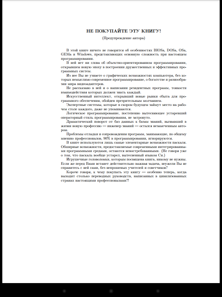 >>58835 Само собой. Вообще в книгах, помимо краткого описания, есть: а) название б) оглавление в) предисловие Что тоже помогает определить нужна мне эта книга или нет. мимо-погромист