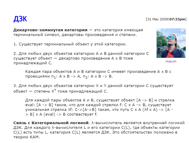 Но он производит впечатление шиза. Это вообще распространенное явление в современной computer science - месиво из плохо переваренных понятий из продвинутой математики, надувание щек по поводу того, что в CS тоже используютcя идеи из "первой культуры", хотя они там как не пришей к пизде колено.