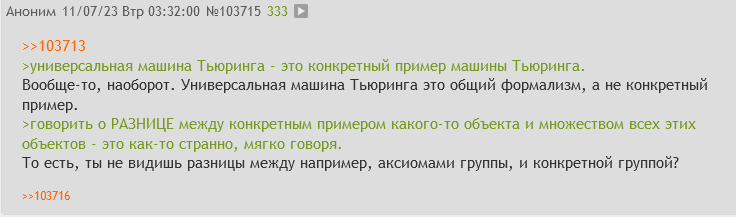 В шёпот со школьника на пердиксе, ты там в школе расскажи училке по матеше, что произошла чудовищная ошибка, что все человечество не понимает как работает машина Тьюринга и чем отличается от универсальной, а ты, Поридж, один понимаешь. Какой же тут всё-таки зоопарк, зумерда, зачем вы такие?..