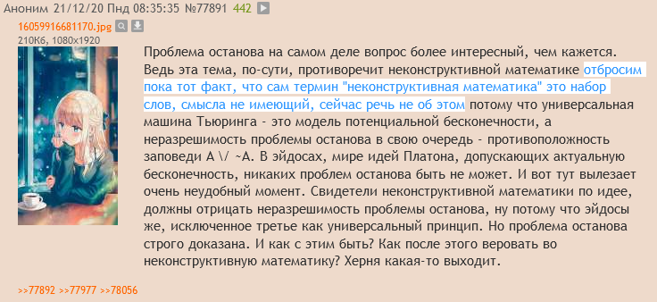 >>107329 А вот еще похоже тот самый момент когда конструктивный петух твердо решил вплести бедного Тьюринга в свой безумный нарратив.