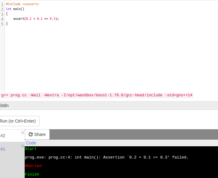 >>60648 Ну не совсем с произвольными, а просто с рациональными. То есть любое деление они представляют в виде большой десятичной дроби. И поэтому сравнивают результаты деления взаимно простых чисел не с помощью знака равно а с помощью больше-меньше погрешности. Ты об этом? Из за этого включается так называемая Floating-point arithmetics, которая даже не может правильно сравнить результат сложения двух десятичных дробей 0.1 + 0.2 == 0.3 // false