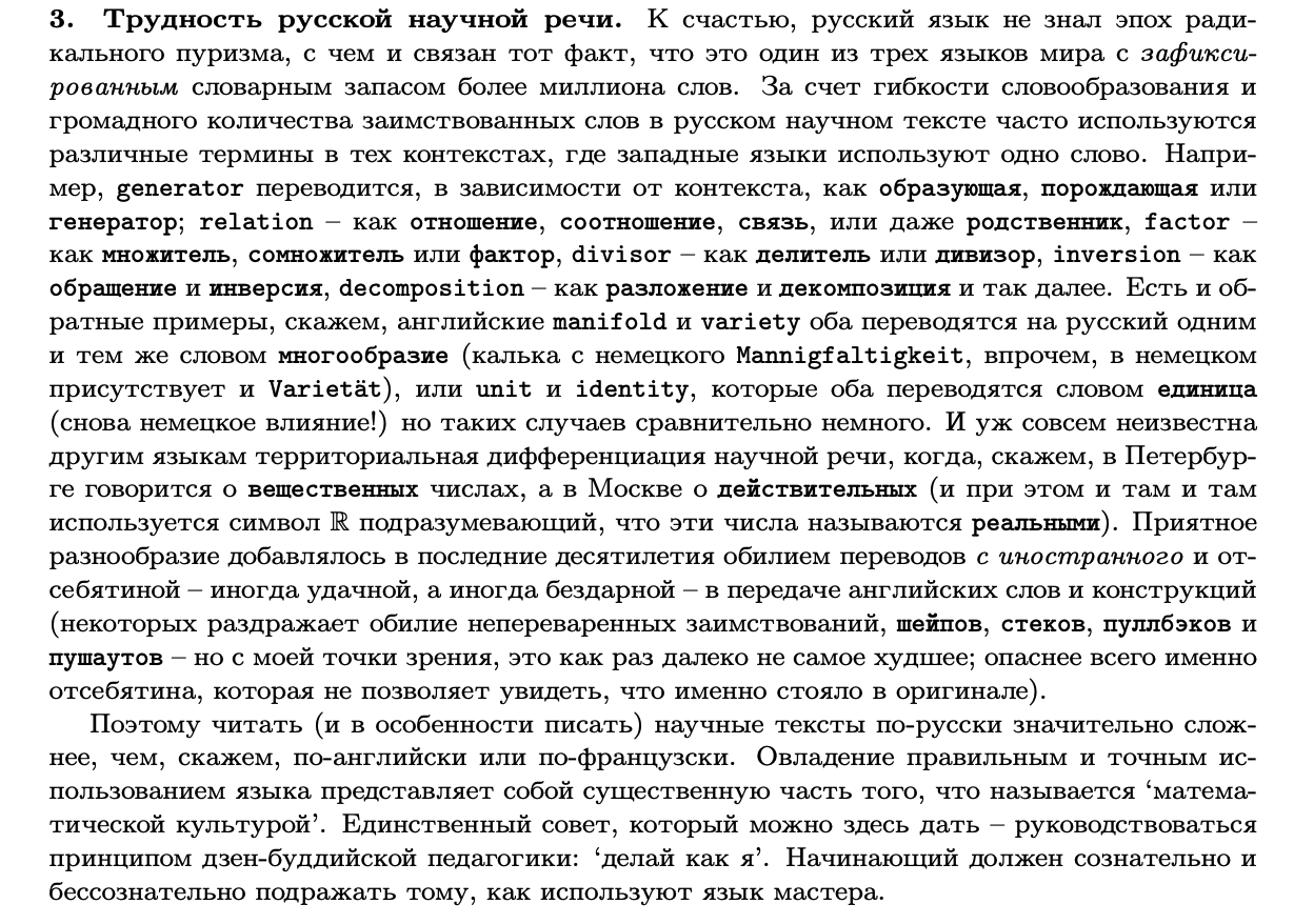>>97841 >Шабата >Дали концептуально правильный курс: категории, когомологии групп, точные последовательности и вообще, строжайшие определения (то есть там эпиморфизм не всегда сюрьективен, например). Умерли в итоге все, а задачи сдавали более-менее только те, кто знал алгебру уже до этого. Доходило до смешного: человек имел на матфаке автомат за алгебру, а в курсе НМУ с трудом сдавал хотя бы одну задачу из листка. Зато концептуально правильно!