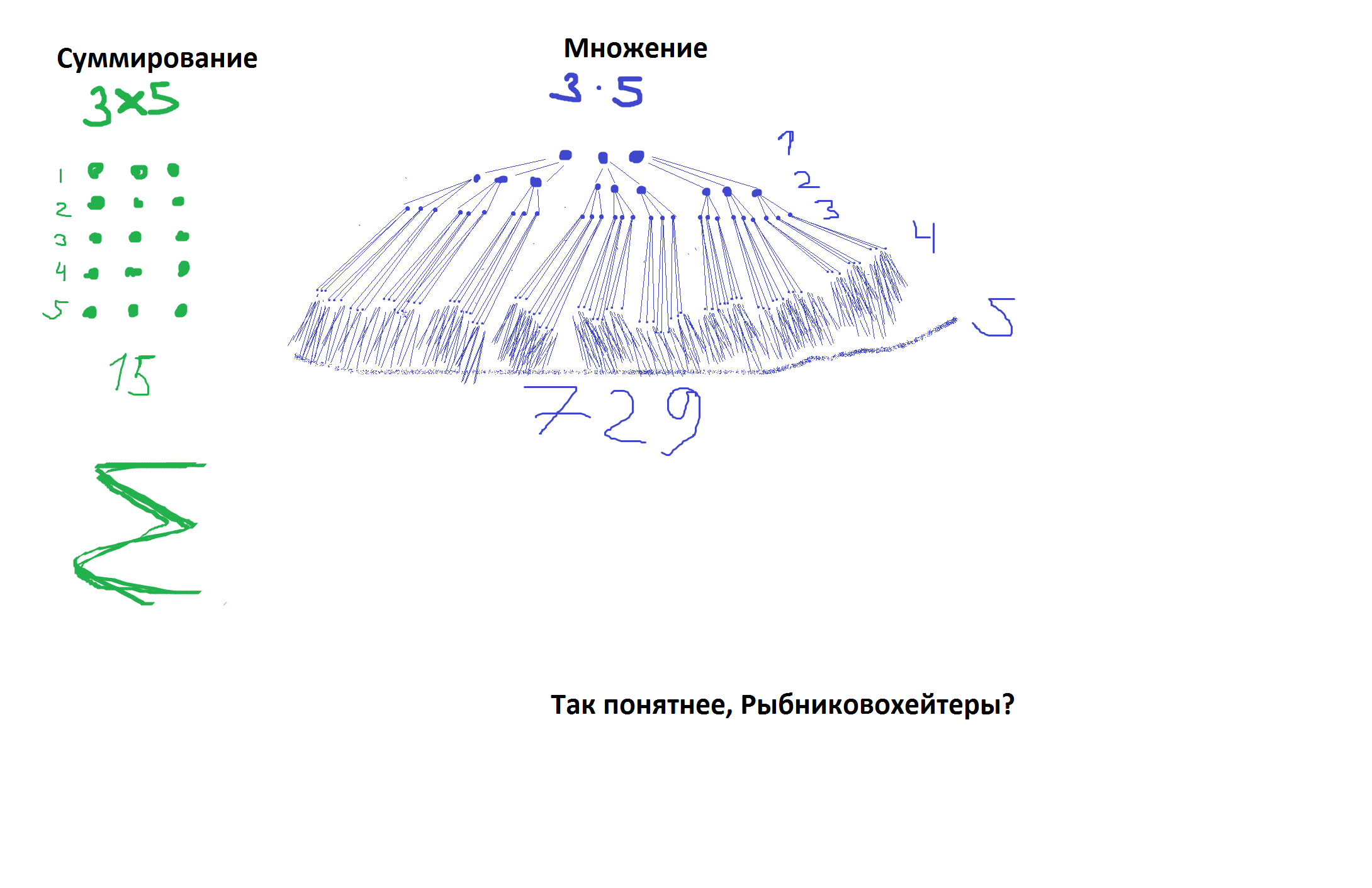 >>60789 Расскажите этому деду про степень, хотя я думал, что о них ещё в Древнем Египте знали. Наверное это всё из-за того, что Рыбников учился по книгам древних Русов, а они появились раньше, чем цивилизация Древнего Египта, вот дед и не знает о степени. А так всё верно, умножение - это ускоренное сложение.