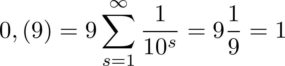 >>34395 Типа всё зависит от того, что мы считаем, что 9x10-1+9x10-2+... в двух случаях равны, а считаем мы это исходя из всей хуйни аксиоматической по идее.