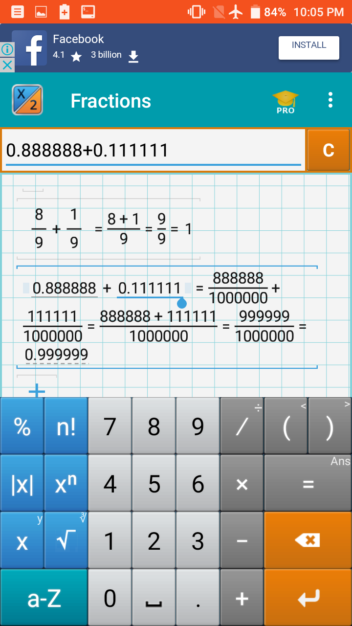 Кроме того, мы поняли, что дроби, дающие бесконечные результаты никогда не могут быть равны чему-то конечному. И некоторое число мы не можем просто взять и представить ввиде бесконечное дроби, поставив знак "=", мы до её конца не доживём.