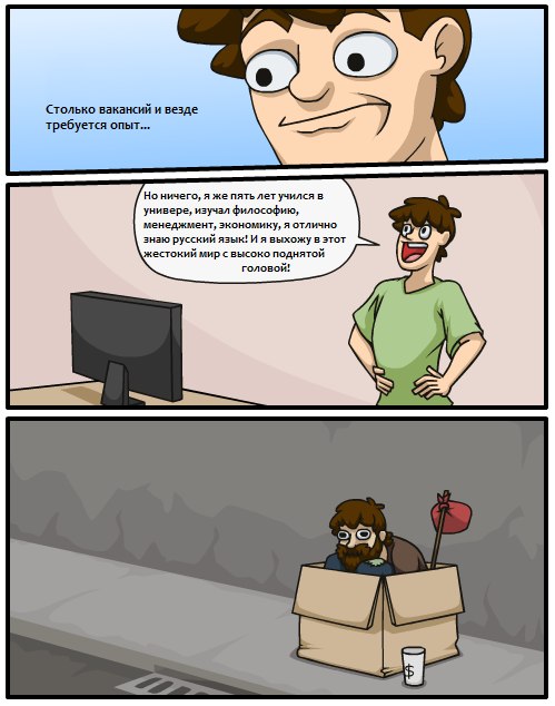 Прост у тебя вера в Швитое Образованиеце, которая культивировалась годами. Вот закончишь ты Гарвард/Пизтех/МухасранскГУ вот тогда точно нигде не пропадешь и все тебе будут рады. А на практике то вон оно как получается.