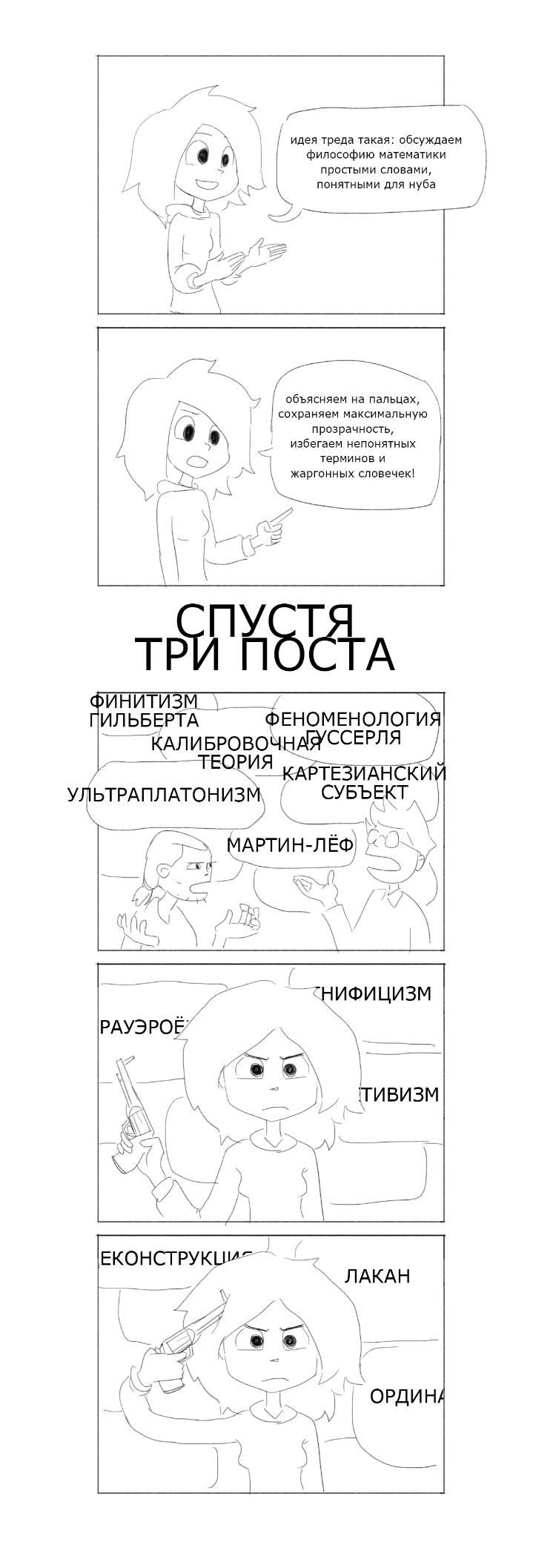 >>68807 Лол, у тебя уже такое состояние наблюдается? Зная себя, я скорее буду заниматься селфхармом, а умирать буду в надежде, что зареспавнишись в след.жизни бог сделает меня более талантливым. >>68808 Да, но в современном CS достаточно математики, даже пуристкой, помимо прикладной, например, в HoTT или Топосы с ТК, которым многие обдрачиваются, как я, сами не до конца понимая, что в итоге хотят получить.