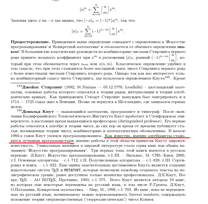 >>68972 Один из аспектов анализа алгоритмов это подсчёт количества шагов алгоритма в зависимости от входных данных. Кнут собрал кучу теории по этой теме, систематизировал и популяризовал. Математики эту теорию называют перечислительной комбинаторикой. Ещё Кнут разработкой алгоритмов занимался.