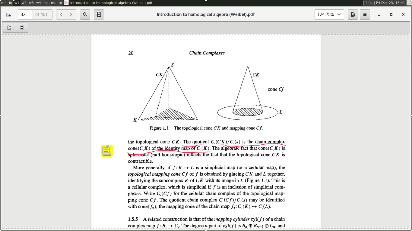 Я не понимаю почему сингулярный комплекс топ. пространства Cone f равен комплексу (Сone f). / C(s) (где s - вершина конуса). Нахуй доп. факторизация по точке? Не понимать.