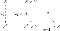 >>2473 (OP) Предлагаю такой вопрос - для чего может потребовать коэкспоненциал? Обозначим его как (Z_Y, coeval). Это начальный универсальный морфизм из объекта Z в функтор ( - \times Y).