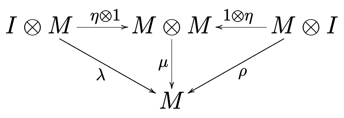 >>84344 Да, понятна. Вопрос был конкретно о том, как выглядит диаграмма для этого жаргонного выражения. Если бы это был вопрос о моноиде, то нужна была бы вот эта картинка.