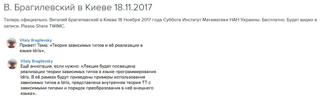 >>40938 Манина наш конструктивист лишил статуса математика и за меньшие пригрешения: тот упомянул в своей книге существование невычислимых функций. С Гротендиком же смешно получилось: конструктивист много говорил про топосы, пока не узнал, что в топосе Гротендика используется аксиома недостижимого кардинала. Пришлось срочно маневрировать и убеждать, что у Гротендика, который данное понятие ввел, определение неверное, вот, у Лавера верное или еще у кого. С Воеводским и теоремой о гомоморфизме норменного вычета похожее было, оказалось: кумир занимался гамалогиями до святой теории типов. Предательство почти.