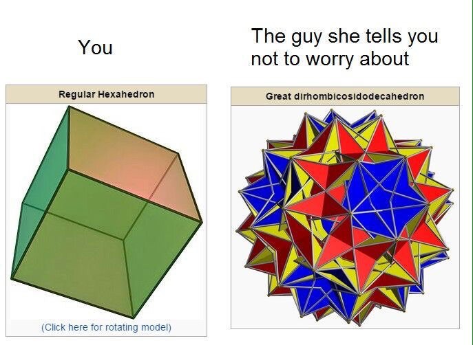 >>4704 Нет. Лучше посмотри, какой охуенный я нашёл додэкаэдр. Обожаю додэкаэдры, сука. Какие они правильные, с 12-ю гранями. Когда работал трудовиком - заставлял детей всех возрастов делать из всевозможных материалов додэкаэдры - чтобы у них мозги работали. Нужно БОЛЬШЕ додэкаэдров!