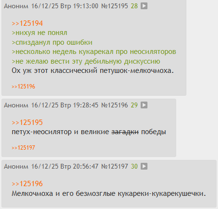 >>125954 Так он же изначально из этих, это сразу было понятно. Я к тому, что он даже в тараканинге (а там довольно низкий порог входа) верен своей стратегии – агрессивно нести отборную чушь, игнорируя любые возражения по сути