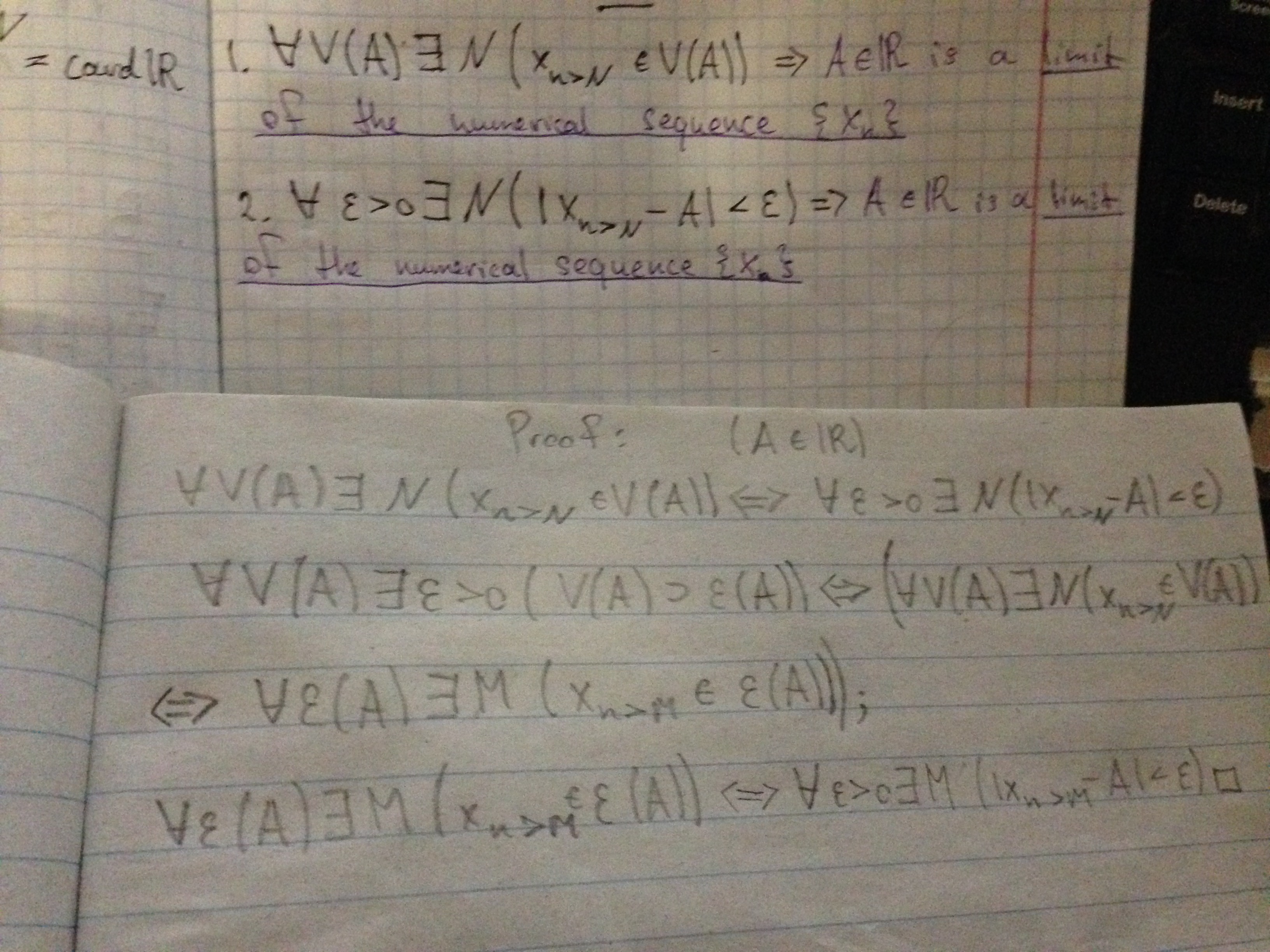 >>10354 >почему эквивалентно чтобы доказать эквивалентность понятий 1 и 2, надо доказать, что 1 => 2 и 2 => 1. Нетрудно, например, доказать, в случае с пределом, что 2 => 1, просто взяв предел от двух частей. Почему 1 => 2, подумай сам.