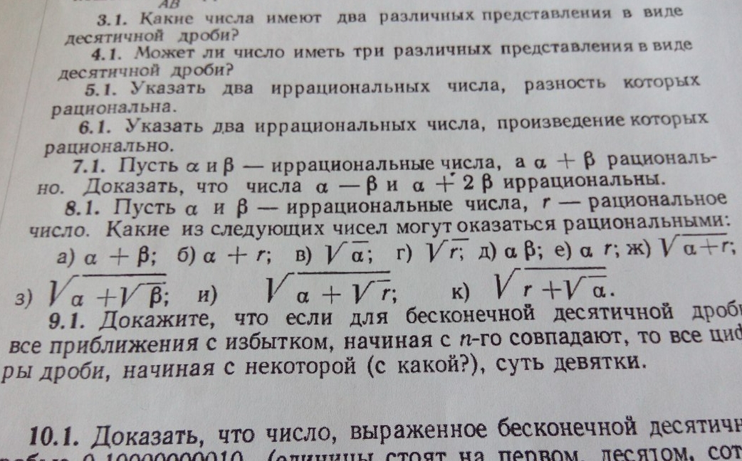 >Разве это все не должно быть в книжке по истории анализа, а не по самому анализу? Нет. >Зачем давать три разных определения непрерывности вещественных чисел, затем выводить их через друг-друга ("полезное упражнение"), хотя этим свойством уже обладают рациональные числа? А что ты предлагаешь дать одно для рационального? А потом для действительного?