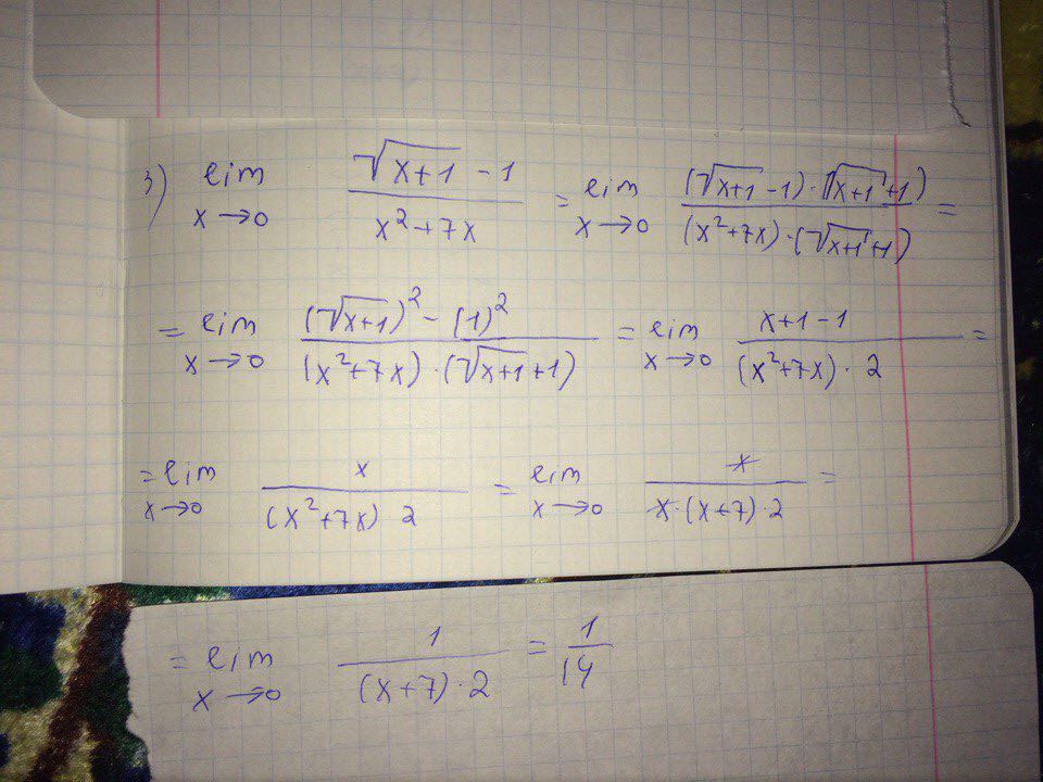 >>59333 Как сказал этот джентльмен: >>59336 , подобные примеры решаются удалением кхуям корней из числителя. Делается это путём умножения на т.н. "сопряжённое выражение". По сути - нам нужно получить в числителе разность квадратов: (a-b) x (a+b) = a2-b2