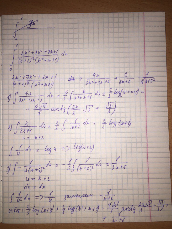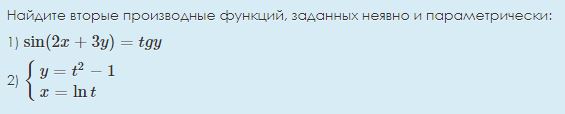 >>6512 1)производная это предел отношения приращения функции к приращению аргумента. lim x0->0 (f(x+x0)-f(x))/x0 подставляешь функцию сюда, упрощаешь выражение 2) считаешь производную по формулам. не забывай, про производную композиции: (f(g(x)))'=f'(g(x))g'(x) т.е. например (sin(x^2))'=sin(x^2)'(x^2)'=cos(x^2)2x неочевидны разве что примеры 5 и 6. в 5 надо не забыть, что дифференцируешь по x, в 6 представить выражения как x^(1/x). 3) считаешь производную, а потом снова считаешь производную. неочевидно, что имел в виду препод в третьем примере, учитывая текст задании