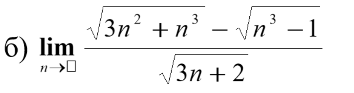 >>4 (OP) Как решать подобные пределы? Точно так же как и другие неопределенности типа бесконечность деленная на бесконечность -- разделив числитель и знаменатель на старшую степень n или же как-то иначе? (N стремится к бесконечности, символ бесконечности почему-то не отображается на картинке)