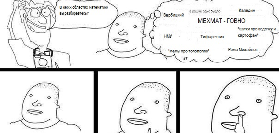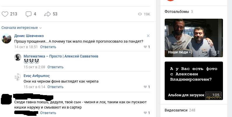 >По мне так, это абсолютно поебать, что они там вещают кроме математики. Просто Алексей лезет в кажду жопу без смазки, причем даже на олимпиадном уровне довольно слабо шарит, чем невероятно раздражает. Можно деньги ставить на то, что он вряд ли больше трех взрослых книг по математике прочитал за последние десять лет.