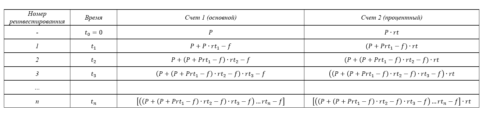 >>62846 Упс, нашёл ошибку. >Эти функции у тебя перечислены в самом правом столбце таблицы, только в самом конце вместо t надо будет подставить T (которое нам заранее известно). Вместо t надо подставить не T, а T-t1-...-tn, то есть не весь большой промежуток времени, а только его самый последний кусочек, от последнего реинвестирования и до конца периода наблюдений. Вроде так.