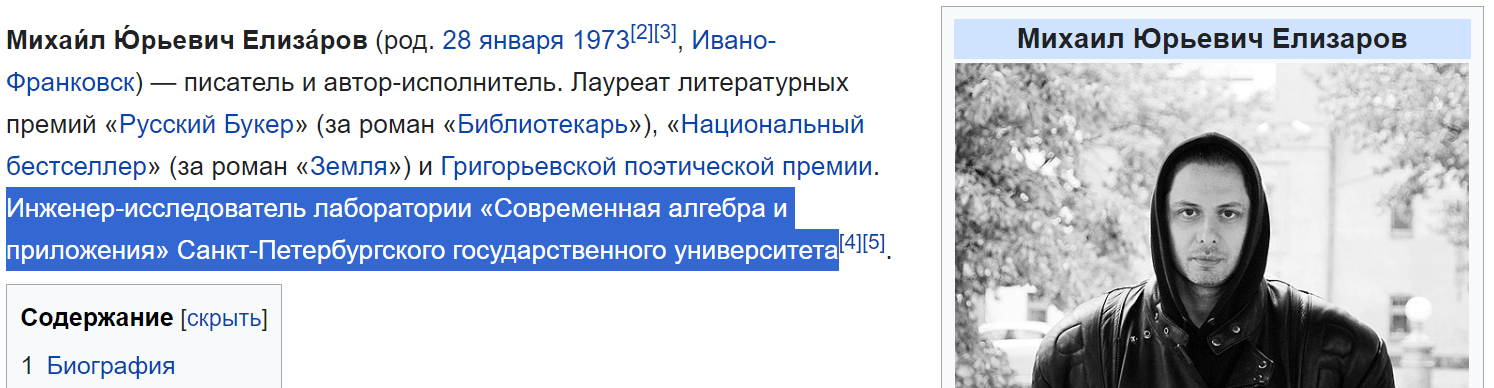 > Окончил музыкальную школу по классу оперного вокала, окончил филологический факультет Харьковского университета. Во время учёбы в университете отслужил в армии. > В 2001—2003 годах жил в Ганновере, где учился в киношколе на телережиссёра. > В 2010 году создал музыкальный проект. > С 2001 года пишет романы и песни. Как он умудрился математиком стать? Это прикол какой-то? Или он там гамалогии и пучки считает, и для этого можно просто так по фану вкатиться между концертами и писанием книг?