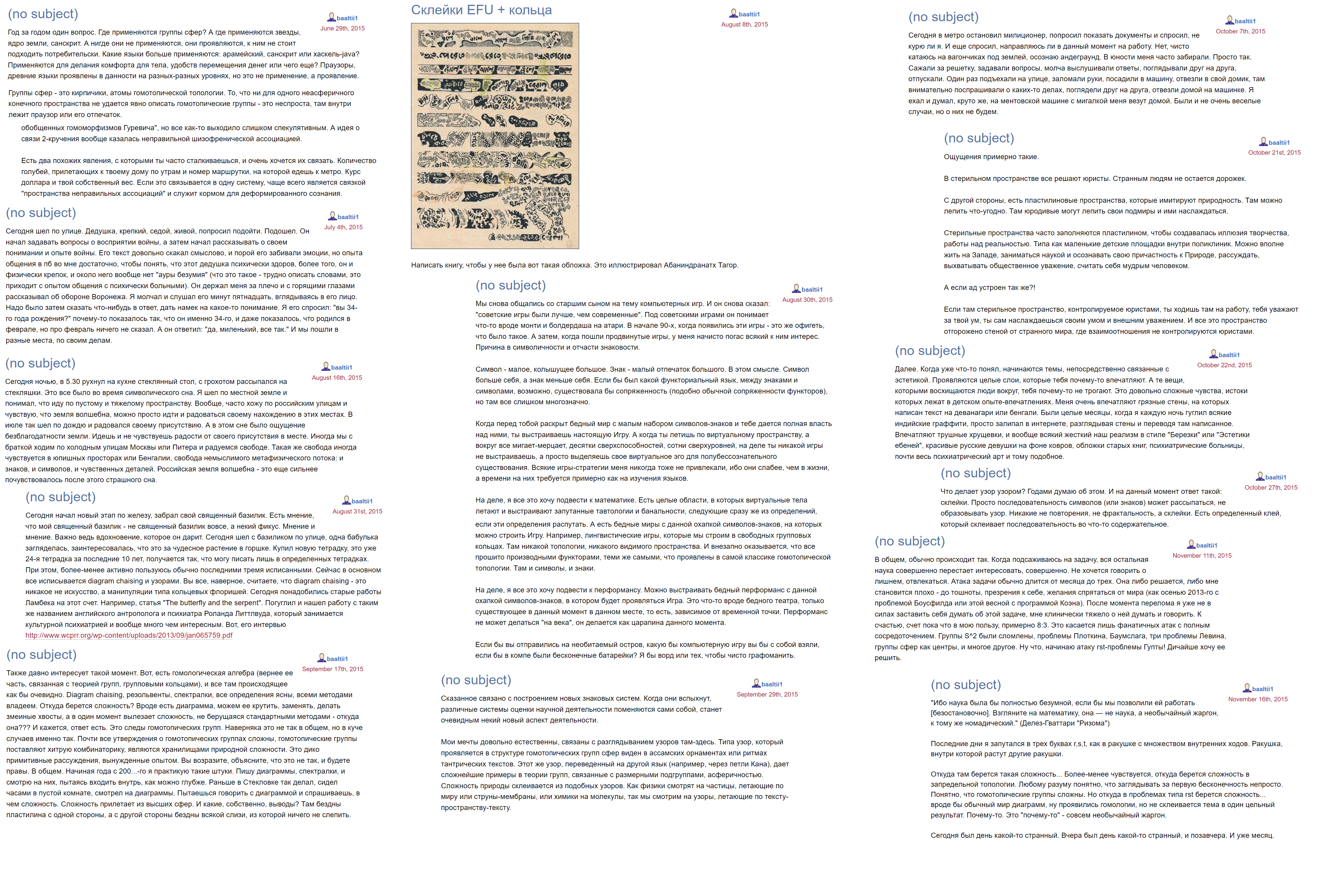 >>75264 Нашел интервью https://baaltii1.livejournal.com/200269.html Воеводский там с 2012 и до смерти в 2017 на коменты отвечал. А мог бы видеоблогером стать, думаю его идеи о скрытых разумах стали бы популярны.