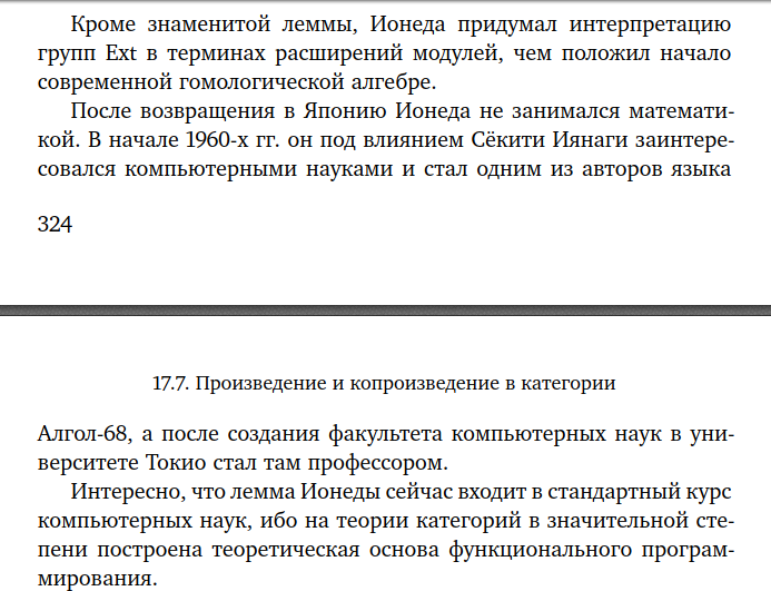 >>77089 Хотелось бы видеть больше книг по современной высшей математике, написанных в более доступной манере. Я уважаю сухой академический стиль, но всё же сложно переоценить простоту и красочность естественного языка при описании абстрактных понятий. Я не имею в виду научно-популярные труды вроде книг Брайана Грина, в которых вообще нет формул. Ведь мой опыт чтения книг по программированию показывает, что даже сложные практические концепции можно наглядно продемонстрировать и пояснить. Также с большим теплом вспоминаю книги вроде «Наглядная геометрия и топология» и издания «Кванта»…