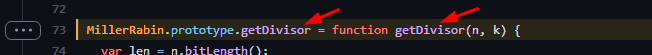 >>80536 Я знаю, как работает тест миллера-рабина, на простоту. Но речь шла о более расширенной функции этого алго - о функции getDivisor, которая должна бы, походу, возвращать ещё и делитель. И она его, вроде как возвращает, только как - хуй знает. Блок-схему бы, читабельную.