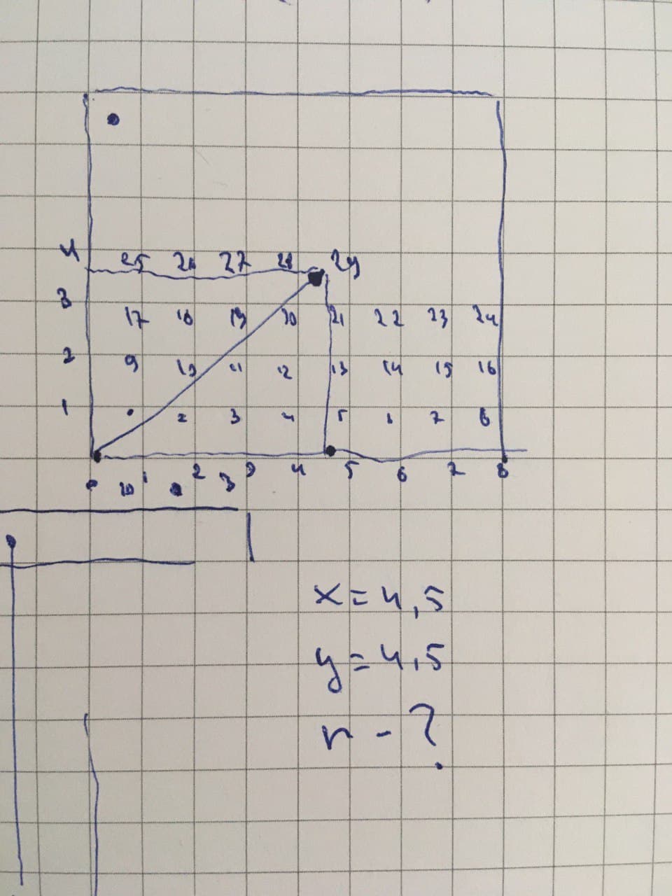 Анончане, помогите с тараканьей хуйнёй. Вот допустим у нас есть сетка 8x8, каждая ячейка пронумерована, в левом нижним углу находится 0 и дальше номера ячеек возрастают по мере движения влево вверх, см пикрил. Так же у нас есть вектор [4.5; 4.5]. Вопрос на какой номер ячейки он указывает, как посчитать-то подскажите позязяяяя