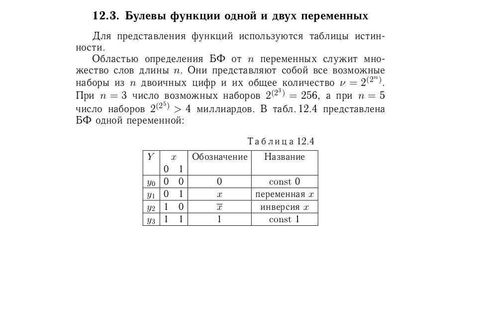 Всем привет. Читаю тут книжку одну(пикча 1). Ну и там натыкаюсь вот на это и не понимаю, как связана комбинаторика с этим и откуда вообще 16 функций беруться. Полез в учебик по дискретке, там буквально то, что на остальных пикчах. Я, канеш, могу все просто на веру принять и не разбираться че к чему, но хотелось бы понять почему так. Почему одна переменная дает 4 варианта, а две 16? Откуда вообще это все берется? А в таблице для трех будут еще какие-то новые функции? Как понять, что они точно будут и какие? Короче в моей голове не складывается причинно-следственная связь, может мне аноны как-то по-другому объяснят, чтобы я понял.