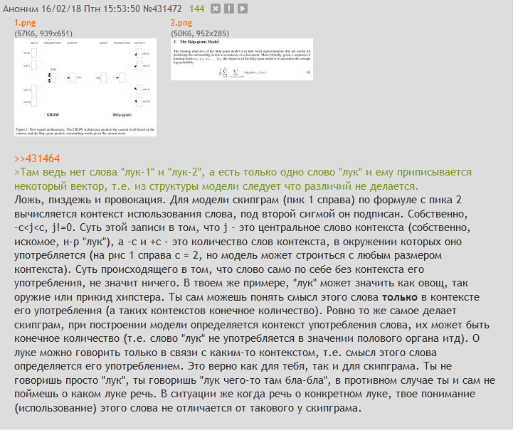 Ты хотя бы сейчас можешь признать что писал полнейшую хуйню что в word2vec есть какие то там контексты и он все могет различать или еще крутанешь хвостиком?